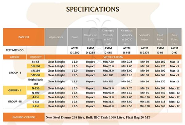 We trade in BASE OIL which includes Mineral and Synthetic GROUP I, GROUP II, GROUP III and ADDITIVES including Petrol Engine, Diesel engine, Gear Oil, Hydraulic oil, ATF, 2T engine , 4t engine Oil, TBN booster, Additives Packages also available detergent, dispersant, ZDDP, anti oxydent anti wear , VII, OCP, extreme pressure and anti foam.
